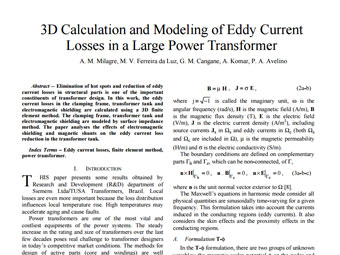 3D Calculation and Modeling of Eddy Current Losses in a Large Power Transformer