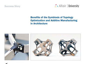 The challenge was to investigate the potential offered by the symbiosis of topology optimization and additive manufacturing for architectural projects. The Altair solution included the use of the HyperWorks suite, especially OptiStruct for optimization tasks. The benefits were reduced construction time and costs due to decreased material usage while receiving better and more esthetic results.